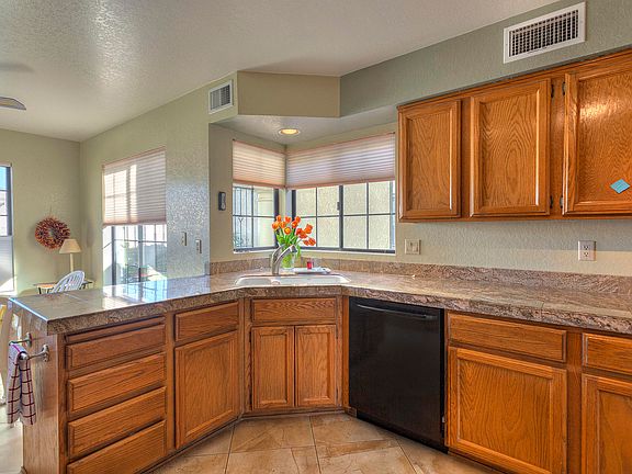 Discover the art of living! This charming town home is the home of an artist and it shows in the tasteful finishes. You'll enjoy the colors and textures of this beautifully updated and well-located home near the Loop, great restaurants and other services. The flooring is large-scale diagonal tile, leading through a colorful and light-filled foyer with a lighted art niche to a spacious great room with dining area and living room with fireplace. Just off the rear is a lovely patio. Another private patio is accessed from both the master bedroom and bedroom two. A third bedroom is currently used as a home office and is well-located next to the hall bathroom. The kitchen features extensive solid oak cabinetry with granite tile countertops. May be purchased fully furnished!