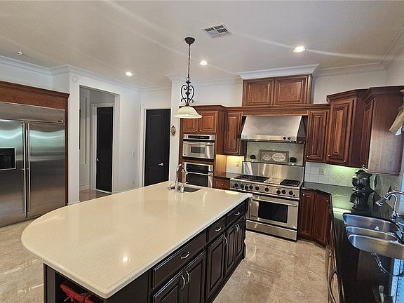 - Description: Breakfast Nook/Eating Area,Butler Pantry,Custom Cabinets,Garden Window,Granite Countertops,Island,Lighting Recessed,Marble/Stone Flooring,Pantry,Stainless Steel Appliances