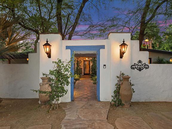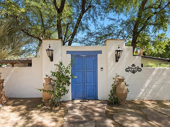 This updated Spanish-style home spans approximately 3,280 sqft on nearly half an acre. Originally built in 1948, this impeccably maintained property marries timeless elegance with modern luxury.The main house features 3 bedrooms and 3 bathrooms, showcasing exquisite Saltillo floors, artisanal woodwork, and vibrant tile accents. The gorgeous kitchen is a chef's dream, boasting Italian cabinets, designer lighting, limestone countertops, and top-of-the-line Viking appliances.The primary suite is a true sanctuary with a spacious en-suite bath, dual walk-in closets, and a private patio with French doors opening to the pool and spa. Each additional bedroom offers unique touches of luxury, including bath and pool access.A separate 2 room casita with its own entrance and kitchen provides privacy and convenience for guests or extended family. The resort-like backyard is perfect for entertaining, featuring a sparkling pool and spa, fire pit, outdoor kitchen, and covered dining and lounge areas.Additional amenities include a separate laundry room, a 2-car garage with an EV charger, carport, and RV parking. The home's energy efficiency is unparalleled, with solar panels and a multi-zone HVAC system, including mini-splits, newer doors and windows earning it a Pearl Level certification.With no HOA fees and an enviable location, this gem is the epitome of luxurious desert living. Don't miss the opportunity to make this exceptional property your own.