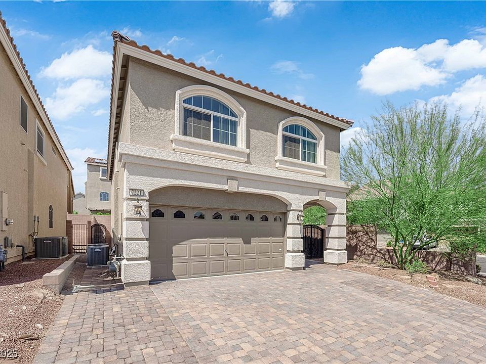 Welcome to this beautifully maintained 2-story home nestled in a quiet Las Vegas neighborhood. Boasting 2,277 sq ft of living space, this spacious 4-bedroom home offers comfort, functionality, and easy living ideal for those who love to entertain. Step inside to a light-filled interior featuring an open-concept layout and a sleek, modern aesthetic. The generously sized primary suite includes a stunning ensuite bathroom with dual sinks, an expansive walk-in shower, and elegant finishes throughout. Enjoy a low-maintenance backyard with stamped concrete, perfect for entertaining, grilling, or relaxing in the Las Vegas sun. The elevated planter space offers potential for gardening or creative landscaping.