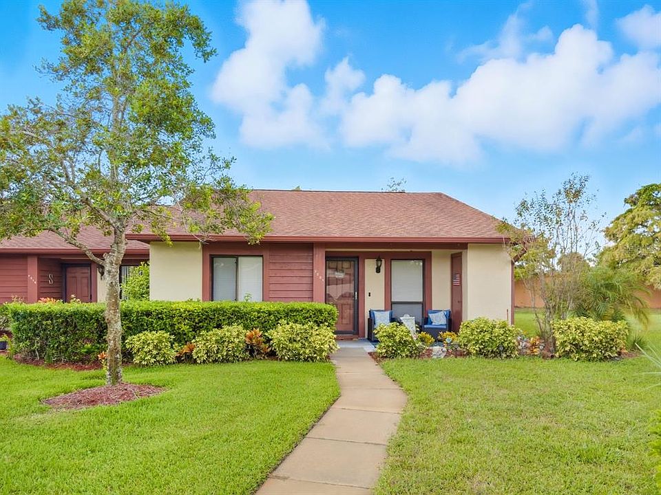 Now available in the desirable 55+ community of Glenwood Village, this beautifully refreshed end-unit condo offers the features 2 bedrooms and 2 full bathrooms. The kitchen showcases new cabinets, elegant granite countertops, and recessed lighting, seamlessly opening to the spacious dining and living area accented by new light fixture and ceiling fan. Luxury vinyl plank flooring flows throughout most of the home. The guest bath includes a walk-in tub with jacuzzi jets and is complemented by updated lighting and fixtures. The primary suite offers a walk-in closet and an en-suite bath with a new sliding glass shower door, lighting, and faucet. A heated and cooled sunroom extends the living space year-round, complete with a laundry closet and included washer and dryer. Step outside to a private paver patio with no rear neighbors—ideal for relaxation. Additional conveniences include a storage closet and covered carport parking. Roof(2015), AC(2019), Water Heater(2013). The HOA covers cable, internet, exterior maintenance (including roof and paint), trash, grounds care, and reserves, while also providing access to Beacon Woods amenities such as the pool, fitness center, clubhouse, billiards room, bocce ball, tennis and basketball courts, and a pay-as-you-go golf course and more. Schedule your private showing today and experience maintenance-free Florida living at its finest.