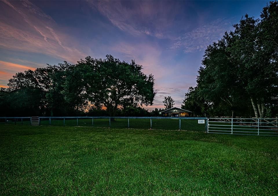DREAMS REALLY DO COME TRUE… ACREAGE, HORSE BARN, AND FRESHLY PAINTED with NO FLOODING in the neighborhood or on the property from recent hurricanes. This is the EQUESTRIAN ESTATE you've been waiting for, located in one of the MOST DESIRABLE and ESTABLISHED NEIGHBORHOODS in Odessa known for its TOP-RATED SCHOOLS! BRING THE ANIMALS, BOATS AND TOYS. There is SOMETHING for EVERYONE. Situated on over 3 ACRES, featuring a 3-STALL BARN and a 68' x 200' RIDING ARENA. Nestled on a DEAD-END STREET, this 3,751 Sq Ft home features a TRUE SPLIT FLOOR PLAN, ideal for MULTIGENERATIONAL living or offering an IN-LAW SUITE for INCOME-PRODUCING OPPORTUNITIES. Inside, you'll be greeted by high ceilings, thick baseboards, and crown molding throughout. The kitchen boasts a new FRIDGE and DISHWASHER (2023), eat-in dining area, and a large pantry. Enjoy STUNNING VIEWS of the BARN from the kitchen and your enclosed back porch. The SPACIOUS living room is ideal for ENTERTAINING. Each bedroom is generously sized and features walk-in closets. The second bathroom includes double sinks and decorative tile in the shower. On the opposite side of the home, you will find a large bedroom with a private bathroom and decorative shower. An additional storage room provides ample space for all your organizational needs. Wake up to PEACEFUL VIEWS of your horses right from your primary suite. The primary bathroom features dual sinks, a separate vanity, a jetted tub, and walk-in shower. KEY UPDATES include a METAL ROOF with maintenance completed (December 2023), FLAT ROOF replaced (2018), NEWER AC UNITS (2022), Septic System pumped (January 2024), and 2 HorsePower Well Pump Installed. Outside, you'll find a HURRICANE-RATED Woody's block BARN featuring three matted 12x12 stalls. NO DETAIL HAS BEEN OVERLOOKED in this barn's CUSTOM DESIGN, with each stall offering lighting, electrical outlets, fans, and PRIVATE RUN-OUTS. The barn includes a COVERED WASH RACK with shelving, additional cross ties, and a SURROUND SOUND SYSTEM. The FEED/TACK ROOM COMBO is equipped with shelving, saddle racks, and bridle hooks. The property also boasts a full-sized, RAISED and IRRIGATED Dressage Arena designed to withstand Florida's summer thunderstorms, ensuring OPTIMAL RIDING conditions YEAR-ROUND. Also designed for easy expansion to suit your needs, if desired! FOUR fully IRRIGATED paddocks, each with water access, provide AMPLE SPACE for your horses. The front paddock features a GORGEOUS OAK TREE offering shade during summer. There's plenty of room to park your trailers! AVOID THE HASSLE AND COST OF BUILDING A BARN. This property offers CONVENIENCE located near shops and dining. BIKE LOVERS and NATURE WALKERS will enjoy the UPPER TAMPA BAY TRAIL, just steps away from your neighborhood, and JAY B. STARKEY WILDERNESS PARK, only minutes from home! The Veterans Expressway is just minutes away, and Tampa International Airport, Wesley Chapel, Pinellas, and Pasco Counties are all within a SHORT COMMUTE. HORSE LOVERS REJOICE: Northwest Equestrian Park, Brooker Creek Preserve, and Lake Dan Nature Preserve RIDING TRAILS are all less than 15 minutes away! Tampa Fairgrounds is 35 mins, TerraNova Equestrian Center is 1 hour 40 mins, and the renowned WORLD EQUESTRIAN CENTER is only 1 hour 30 mins. DON’T MISS THIS INCREDIBLE OPPORTUNITY to make this farm your own—view the Floor Plans, Virtual Tour, and schedule your showing today!