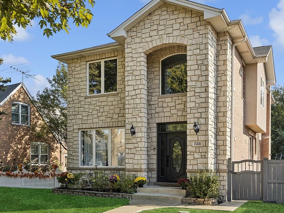 Gorgeous Brick & Stone Home in Prime Edison Park Location! This beautiful home offers a fantastic floor plan with four spacious bedrooms and two full baths on the second level. Enjoy hardwood floors throughout, an eat-in granite and stainless kitchen with a breakfast nook and stone island - perfect for both casual meals and entertaining. The family room with fireplace flows seamlessly from the kitchen, creating an ideal gathering space. The primary suite features a large walk-in closet and a spa-like bath with separate shower and jacuzzi tub. Three additional bedrooms and a full bath complete the second floor. The finished basement includes a wet bar, half bath, and laundry room - great for extra living or recreation space. Sitting on a wide 40-foot lot, the home also offers a newer 2.5-car garage and a lovely yard. Walk to top-rated schools, parks, shopping, and transportation. This home truly checks all the boxes - show with confidence!