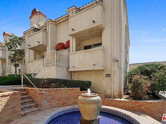 Ready to move in, this two level end unit townhome has many upgrades throughout. Lower level features living room with fireplace and balcony, a half bath, granite counter remodeled kitchen, laundry closet off kitchen, dining area with balcony, and a bar area. Upstairs you have 2 bedrooms each with their own recently remodeled bathrooms, high ceilings, and each with their own private balconies. The home has central air for cooling and heating, two covered parking spaces and is located next to the community fountain which provides a serene setting. Community is gated.