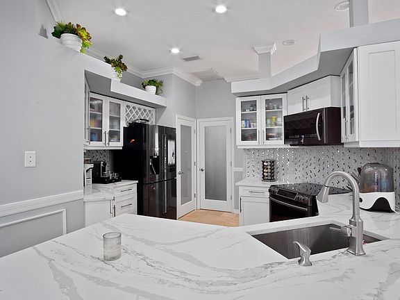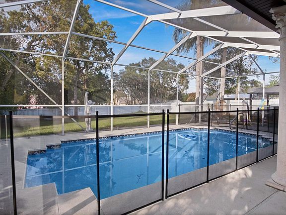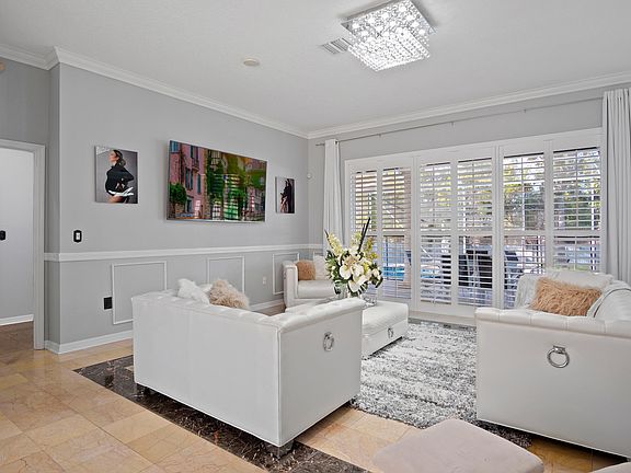 This 4/2/2 pool home offers 1,789 of living & boasts luxury at every turn! Pull into the driveway like royalty as brick pavers welcome you home along w/ a completely fenced in yard. Enter through french doors & be blown away by the gorgeous marble floors, crown molding, plantation shutters, recessed lighting, updated fixtures, & a formal dining room off to your right. For all who desire luxury cooking environments, you've come to the right place! Deluxe stainless steel appliances, granite countertops, a pantry, wine rack, updated light fixtures and backsplash in the gourmet kitchen. Enjoy an open floor plan including a breakfast bar and nook overlooking the living room & pool. The living room complete w/ floor length plantation shutters, crown molding, a chandelier & sliding doors out to the pool. Indoor laundry room w/ overhead storage, cabinets, and a drop sink. The sophisticated master suite is light & bright & complete w/ a walk-in closet. The master bath is the ultimate escape for you to relax & take off the day. Enjoy a large soaking tub, marble walk-in shower, his/hers sinks, & tons of natural light. The oversized guest bedrooms are equipped w/ walk-in closets and share a bath. Guest bath has marble floors, a stand alone shower, & an entrance out to the pool. Fourth bedroom can also be used as a home office to create a separate master wing. Your backyard oasis is accessible from multiple rooms in the house. Enjoy an in ground pool with a safety fence. Your screened in pool area has plenty of room to entertain and BBQ. Completely fenced in backyard for your privacy.