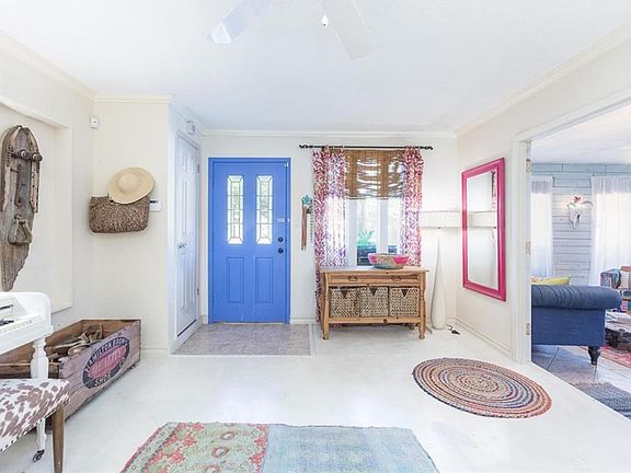 Welcome home to your South Austin Folksy Bohemian in highly desired Whispering Oaks. Swing on the cypress tree in the front yard planted by Mr. Krause of Krause Springs. Beauitifully converted garage with reclaimed wood wall, built in shelving, and unique ceiling tiles. NO CARPET! Updated kitchen flows into the dining room. Two pantries! 2 living areas featuring painted wood floor, wood burning fireplace, bonus front room with beautiful cathedral windows could be your 4th bedroom or office. 2 additional bonus rooms leading to your backyard oasis with outdoor shower, koi pond, powered workshop/art studio, cabana, storage shed, chicken coops, and more! New HVAC, 5 year old hot water heater. Fridge conveys.