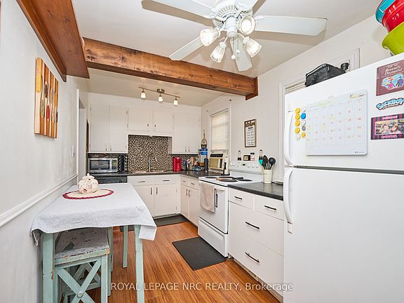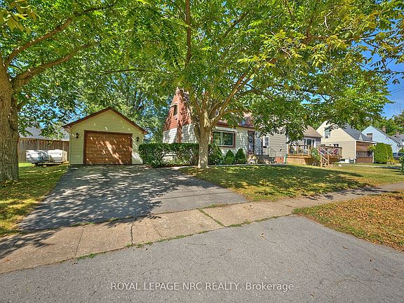 Welcome to this charming 1.5-storey home, offering 950 sq. ft. of above-grade living + a finished basement for added comfort and living space. Perfectly situated on an impressive 90 x 115 ft treed lot, one of the largest lots on the street, this property provides a detached single-car garage and double asphalt driveway, plus plenty of extra space to the left of the garage for trailer/utility vehicle parking-making it ideal for families and guests. Inside, you'll appreciate a spacious living room, adorable eat-in kitchen and the convenience of a main-floor bedroom, complemented by two additional bedrooms on the upper level and two full bathrooms. The finished basement features a generous rec room and a second bathroom, as well as laundry room and utility room for extra storage. Located in a family-friendly neighborhood, this home is just minutes from Lundy's Lane, shopping, dining, tourist attractions, and easy highway access. With its massive backyard and unbeatable location, this property has everything you need to make it your own. Check out attached video tour!
