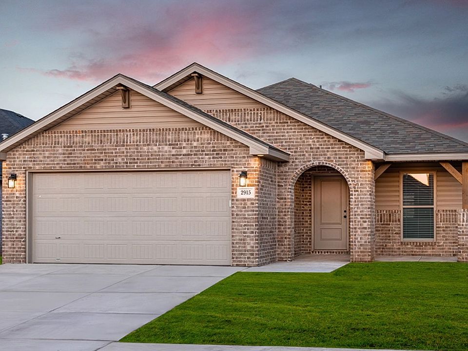 Welcome to this beautiful three-bedroom, two-bathroom home with a two-car garage, designed with both comfort and style in mind. The brick exterior with its arched covered entryway creates an inviting first impression and sets the tone for the thoughtful details throughout.