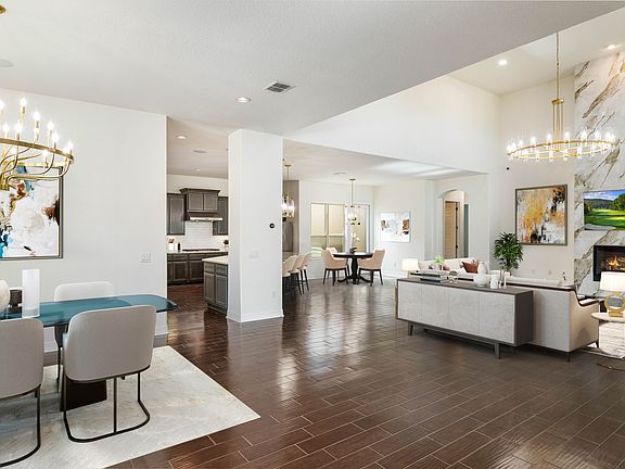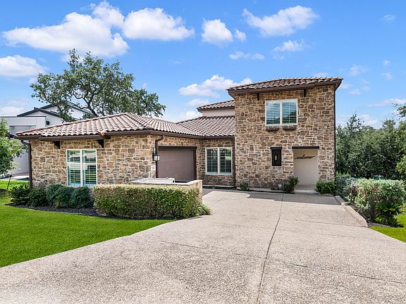 Located in the desirable Bluffs at Dominion, this thoughtfully designed single-story Sitterle home offers a seamless blend of comfort and functionality. A welcoming open-concept layout, highlighted by upgraded designer light fixtures, creates an inviting setting for everyday living and entertaining. The kitchen, breakfast nook, and dining area connect easily within a generous 12 foot space, filled with natural light from an atrium and a raised covered patio on either side. The kitchen serves as the heart of the home, featuring ample counter space, extensive cabinetry, gas cooking, double ovens, and a large island with bar seating, ideal for gatherings. The private primary suite is thoughtfully set apart from the secondary bedrooms and offers a spa-like bath and a spacious walk-in closet. Two additional bedrooms share a full bath, with a nearby half bath for added convenience. A fourth bedroom near the entry provides flexibility to serve as a home office, game room, or secondary living area. Additional features include a finished attic storage space, a dedicated organization area tucked behind the kitchen with built in shelving, and solid surface flooring throughout with tile in the living and wet areas and wood flooring in the bedrooms with no carpet. Smart home automation, security systems with CCTV, wood shutters, and a side entry garage with custom epoxy floors and an EV charger further enhance the home's appeal. The elevated backyard patio offers a quiet space to enjoy morning coffee or an evening drink.