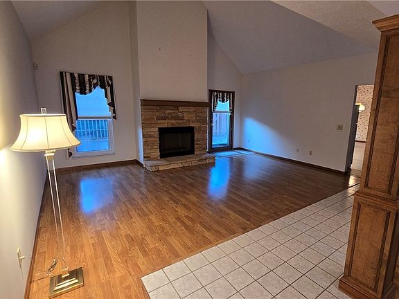 Family room includes cathedral ceilings, gas fireplace, ceramic and vinyl flooring and a door to the outside deck, patio and brick paver patio area. The area is fenced in with a back gate and features a remote controlled patio awning cover. Large master bedroom with a walk-in closet with custom shelving units and rods. Master bath features a jacuzzi, double sinks and a shower and water closet in a separate room. Most of the windows have blinds. One bedroom is being used as an office with semi circle window, countertop desk area and storage cabinets below. Third bedroom has beige carpet and a nice sized closet. Garage has many storage cabinets and is 484 square feet. Homestead amount has been added in to the taxes.