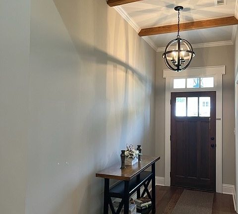 Gorgeous! All the finishes you want! 4 bedrooms 3 full baths Blake Taylor Home PLUS 1.23 acre lot. Freshly painted interior. Extra attention given to all the details. Beamed entry ceiling, custom kitchen with center granite island, under cabinet lighting, double stainless farm sink, kitchen opens to the vaulted Great Rm and large breakfast room. The formal Dining can easily function as an office/media room-check out the coffered ceiling. Beautiful wide plank hardwood throughout all main areas and halls. Large primary bedroom has a beautiful coffered ceiling and big walk-in closet. Primary bath has granite counters with double vanities and Soaking Tub! Love the tile selections and separate tile shower with head. Don't miss the herringbone tile pattern in the laundry room. Roomy tiled screened back porch off of the kitchen has an open patio for the grill. Fenced back yard.