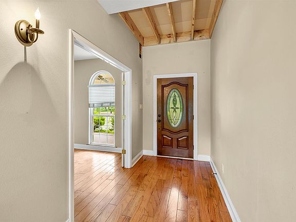 This custom-built pool home sits on 2.5 acres with beautiful foliage and nature. The open floor plan features 18 ft ceilings in the living room with great hardwood floors. There is also a brick fireplace and a formal dining room with French doors to the porch. The kitchen is spacious with great cabinet space, stainless steel appliances, a breakfast bar, desk area, and tile floors. The master bedroom is located on the first floor with an attached master bath suite. If you head up the stairs, you will find the additional bedrooms and a full bathroom! The backyard is an oasis! Being on 2.5 acres and having an in-ground swimming pool, it makes this backyard the perfect place to relax. There is also an outside storage shed and a large pole barn that's about 80% complete. Schedule your showing today!