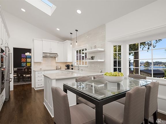 Peaceful, private & pristine. Nestled in a quiet lane in the prime westside Lake Firs neighborhood, welcome to this charming traditional w/ all the right spaces. Freshly remodeled in 2018, this home boasts a stunning new kitchen, hardwood floors, vaulted ceilings & new windows, carpet, paint. 4 BDRS all up, 5th BDR/office on main, multiple rec spaces for fun. Sun-drenched backyard & patio. Beautiful Seattle & lake views; access to community waterfront & day moorage at the dock. You found it!