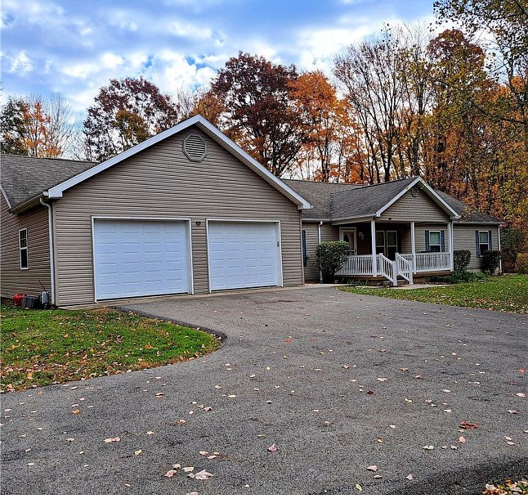 Built in 2007, this expansive ranch home offers generous living spaces throughout and is nestled on nearly 2.5 wooded acres adjacent to Lake Arthur Golf Club. The inviting front porch features durable Nature Stone flooring. The oversized kitchen boasts abundant cabinetry and comes fully equipped with all appliances, seamlessly flowing into the dining and living areas. French doors lead to a cozy family room, complete with a wood-burning fireplace, creating a perfect space for relaxation. This home includes three private bedroom retreats, each with its own full bathroom and generous closets. Additionally, the finished lower level provides bonus space ideal for hobbies, a theater room, or a man cave, complete with a full bath for convenience. Great fenced yard space for family or pets. Enjoy peace of mind with the auto-cycle Generac whole house generator, ensuring power when you need it most. Visit this week and make this stunning property your home just in time for the holidays!