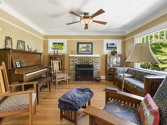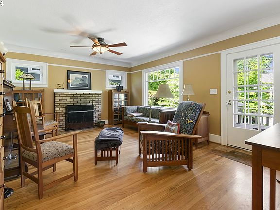 Gardeners Paradise in sought after Mt Tabor! Perched high above the street, this craftsman bungalow will capture your heart! Current owners have cherished this home for 31 years and the prior owners for an impressive 40 years - a testament to the wonderful neighborhood and community! Broad shouldered front porch welcomes you inside to a warm, "homey" vibewith a blend of period details and modern updates including extensive hardwood floors. The grand sized living room features a handsome fireplace and elegant pillars, seamlessly flowing into the formal dining room. Large picture windows flood the space with natural light. Updated open kitchen includes a pantry for ample storage, ss appliances and a smart layout allows for easy meal preparation & entertaining. The main floor primary bedroom provides convenience, while the upstairs connecting bedrooms presents flexibility to meet your changing needs. Stunning remodeled bath adds a touch of luxury, featuring modern fixtures and large walk-in shower. Plenty of room to expand in the spacious basement offering high ceilings, ample storage and laundry. Versatile main floor bonus room opens to a magical backyard, where mature plantings create an oasis of greenery. Gardening enthusiasts will appreciate the whimsical garden shed & extra deep lot, perfect for cultivating flowers, herbs, and vegetables. Attached garage via breezeway. Electrical panel, furnace & gas water heater new in 2015. Central A/C. Prime location - just a one block stroll to Mt. Tabor, where you can enjoy nature, recreation, and summer concerts. Conveniently located on a bus line and close to Montavilla cafes and theaters! [Home Energy Score = 1. HES Report at https://rpt.greenbuildingregistry.com/hes/OR10228687]