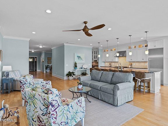 This stunning custom water front 3 bed 2 bath home is one of a kind. It is perfectly located in the heart of Emerald Isle with easy navigation to and from restaurants and shops via bike or golf cart. Boasting over 2600 heated square feet. This home offers the best of the best with attention to detail in every aspect. A luxury kitchen with high-end stainless steel appliances, gas stove, stand alone ice maker, beverage refrigerator, and a spacious butlers pantry. This home also has a formal dining room however, the breakfast nook water views are breathtaking.