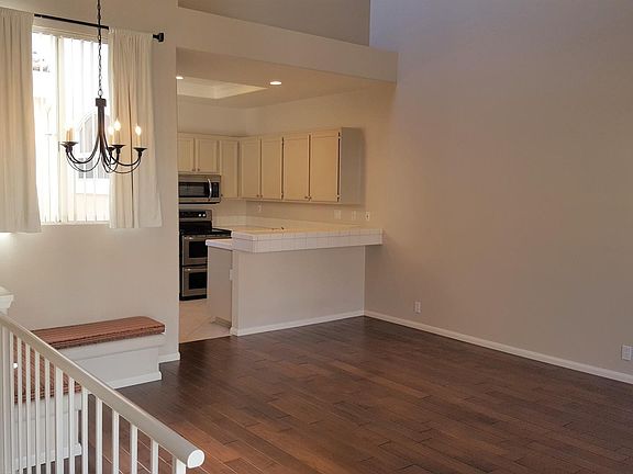 beautifully situated One bedroom one bath with garage!! Centrally located within highly desirable Renaissance Capri Complex. Available first week in April! Open floor plan, wood floors throughout the unit. Carpet only on the stairs, includes one car garage along with washer and dryer in unit. Private balcony off the living room. Pictures do not show recent upgrades done to the kitchen which include countertop, faucet and backsplash for more modern look. Stainless steel appliances. Central Heating & AC for winter time and summer. Animals allowed per HOA guidelines for additional fee. Complex offers pool and spa access along with guest parking pass. Many big corporations surrounding the area for those looking for a short commute to work.Conveniently located short distance to beautiful Westfield UTC Mall. The newly built Trolley & 805 freeway. Not to mention the many restaurants surrounding the area. Walking distance from unit to Nobel Athletic Field & playgrounds. Along with the complex itself having lush green pathways to walk through if one so chooses. Reach out with any questions and to schedule a showing. Owner pays for trash, sewer & water. Tenant responsible for gas and electric along with renter insurance