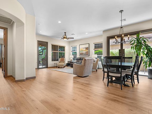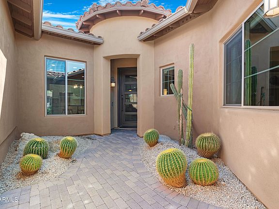 Situated on a premium lot overlooking the 5th hole of Whisper Rock Golf Course, this beautifully upgraded home offers stunning views of boulders and mountains with the perfect southern exposure. A private gated courtyard welcomes you inside to a bright, open floorplan. The heart of the home is the fully upgraded kitchen, complete with stainless steel appliances, Quartz Taj Mahal counters, custom cabinetry, a large island, pantry, and breakfast nook. The adjoining Great Room features a cozy fireplace and spacious dining area, ideal for entertaining. The primary suite showcases a fully renovated spa-like bathroom, designed with modern finishes and thoughtful details. Outside, enjoy resort-style living with lush landscaping, a tranquil water fountain, two paver patios, and a built-in gas BBQ. Custom paint and extensive upgrades throughout make this home move-in ready and one of the finest in Whisper Rock.