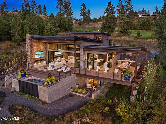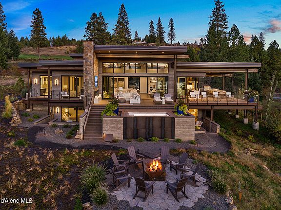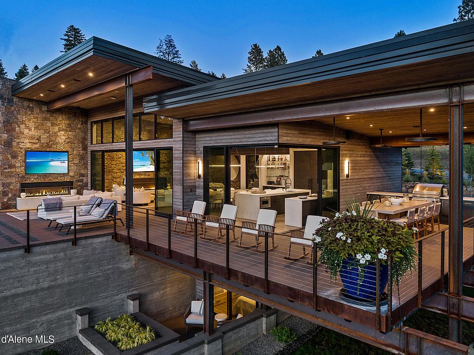 Discover the epitome of modern, comfortable living within this remarkable 4 bedroom, 4 1/2 bathroom home. Situated on an .56-acre parcel of land, 4,662 square feet of meticulously designed living space. The main residence offers fabulous views of Lake Coeur d'Alene, From the upper level sliding patio doors allow you to fully open the home to the oversized deck with all the amenties for outdoor entertaining. This is a rare opportunity to own a property that not only offers an impeccable living experience but also a connection to the land and vistas. Separate living quarters above the garage.
