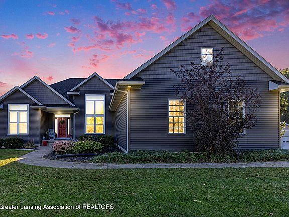 Welcome to 7225 S Krepps Rd! Come see this gorgeous custom built ranch home in St. Johns. Upon entry you will be impressed with the quality and craftsmanship here. This home features many custom details that add character and charm along with all the space one could ever dream of. This four-bedroom, four full bathroom home offers convenient first floor living. On the first floor you will find three bedrooms and an office with its own separate entrance from outside- working from home and need privacy? No problem here! A primary suite not only features a walk-in closet with a full bathroom but also a private deck that overlooks a peaceful 3.5 country acres. The finished basement encompasses an additional full level of living quarters- a perfect in-law suite! This lower-level is equipped with a spacious recreational/living room, a bedroom, a kitchen/wet bar (with kegerator!,) full bath, office space and flex room which can be utilized as a gym, craft room or a 5th bedroom if desired. The basement has an additional laundry hookup if needed although you will find first floor laundry on the main floor. Updates abound here and this home's new owner will find peace of mind with all new siding, a new roof, new water heater and most all new windows! Pride in ownership gleams here! Other updates include: a Generac generator, new flooring in several rooms, a carport for a camper and/or additional storage of outdoor items and a storage shed in backyard. A two-bay, oversized pole barn is supplemental to the 3-car attached garage! You will not run out of space for your outdoor toys at this home! This home is every outdoor enthusiast's or craftsman's dream with plenty of space for a workshop. This residence needs to be seen in person to truly appreciate everything it has to offer its next loving owners.