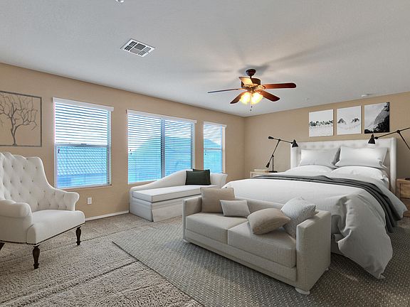 This stunning 4 beds, 3 baths, 3 car garage home will not last! You will walk through the front doors and instantly feel at home. The entry is spacious and inviting, vaulted ceilings really enhance this space! Right around the corner, step into the kitchen offering beautiful countertops and an abundant amount of cabinets. The generous island with the breakfast bar makes the kitchen open and easy for entertaining family and friends. Upstairs the master bed and bath is a fit for a King and Queen where you have an unlimited amount of space. The master bath has dual sinks, a luxurious tub, a large walk-in shower, and your walk-in closet that has room for everything. The backyard is beautifully landscaped, with a covered patio and an extended patio that you can use to grill! Make your way to the grass where you can play some yard games! Schedule your showing today!