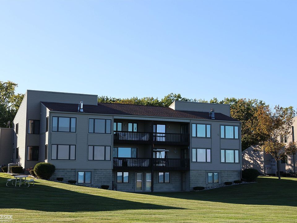 **Open House Sunday October 19th from 1:00-3:00** Beautiful 2-Bedroom, 3-Bath Condo on Lake Huron!! Experience lakeside living at its finest in this stunning condo overlooking Lake Huron. Enjoy gorgeous panoramic views from large windows and two door walls that open to a covered deck, perfect for relaxing or entertaining. Inside, you’ll find wood floors, a natural fireplace, and decorative stone accent walls that add warmth and character. The kitchen features granite countertops, tile backsplash, soft-close cabinetry, and included appliances. The primary suite offers a private bathroom and walk-in closet, while the finished walk-out basement includes a full bath, ample storage, and easy access to the outdoors. Additional highlights include a wood floor entryway, attached garage, and community amenities such as a private beach and tennis court. This is the perfect combination of comfort, style, and waterfront tranquility — all just steps from the shoreline.