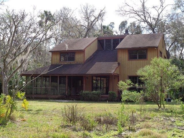 Spacious and open 4 bedroom, 2.5 bath, 4 car detached garage 2 story home. The 4th bedroom is located downstairs and has an attached half bath and could potentially be an office, family room, etc. This stilt home is located on 4.92 acres close to the Alafia River with no HOA . Bring your boat, RV and all your toys. The extensive from porch is screened for enjoying those quiet summer nights. Inside the front door the soaring ceilings welcome you as does the 2 story fireplace and the classic wormwood paneling. With a little work and your touches, you can make this unique home, a gracious mecca for entertaining and enjoying. Don't miss this opportunity. Located just minutes from the Alafia public boat ramps at Riverview Park, US-301, I-75, shopping, restaurants, entertainment and more. This is a Fannie Mae Homepath property.