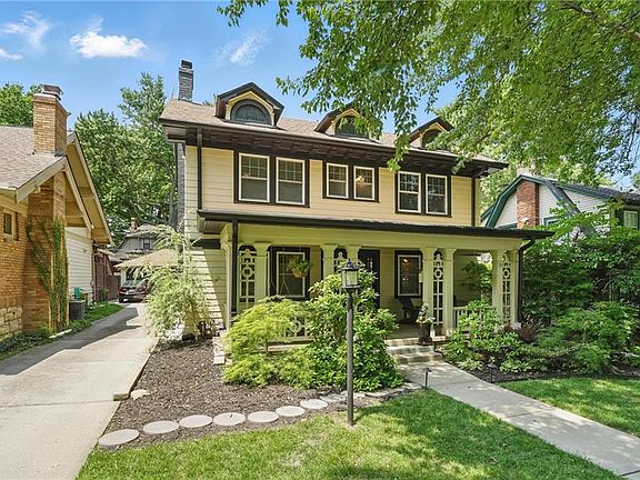 Check out the visual tour in branded visual tour tab, you wont be disappointed !Grab your favorite cuppa while you enjoy sunrise breakfast on Brookside’s “La Belleview” front porch, and enjoy being surrounded by a meticulously maintained grounds. Catch the sunset under the red cedar pergola on the back patio while enjoying your fenced yard. Inside, relax in the generously-sized living room (which is wired for surround-sound). Add all the leaves to your dining room table in the ample dining area. Upstairs, find three bedrooms big enough that no one will feel jealous, including a master suite with heated bathroom floor and walk-in closet. .Updates since 2021 include: Kitchen remodel with new cabinets, backsplash, countertops, composite sink, cabinet hardware and coffee bar. Exterior was painted, chimney repaired, interior and exterior lighting were added and repaired, all hardwood floors were refinished, interior paint, updated 1/2 bath and more. With all of this you may never want to leave home again, but if you do, it is just a hop skip away from Waldo's shops, restaurants and the Trolley Trail! Come see this great house, on a great block, and enjoy being moments away from all that Kansas City has to offer.
