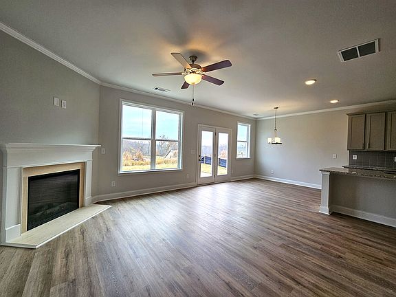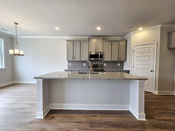 New construction open concept home offers 5 Bedrooms and 3 Bathrooms with a 2-car private garage. There is a guest bedroom and a full bathroom on the main level. The great room opens to the kitchen featuring 42" cabinets, an oversized work island with bar stool seating, granite counter tops, tile backsplash and stainless steel appliances. Spacious dining area with lots of natural light! The kitchen also has a spacious walk-in pantry. This home also offers a drop zone/mud room with valet entrance from garage and powder on the main level. All bedrooms are located upstairs with two bathrooms and a laundry room. Spacious primary bedroom features trey ceilings, primary bath with separate vanities, and large walk in closet.