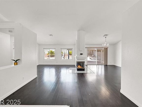 Single-story home with pool & stunning mountain views in NW Las Vegas! This 4 bed, 3 bath gem boasts soaring vaulted ceilings, 2-way fireplace, ceiling fans throughout, fresh paint, brand-new Quartz kitchen counters, and triple-paned windows for comfort & efficiency. Open layout perfect for entertaining, plus covered & paver patios leading to your sparkling pool with separate fencing! Prime location near 215/I-95, parks, shopping & dining, Sunny Springs & Centennial Hills Parks less than a block away! Solar paid off!
