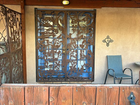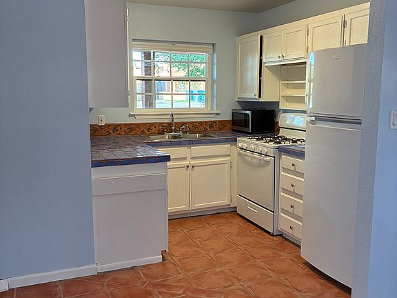 Charming Santa Fe accents, fresh paint, newly renovated bath has soaking tub/shower, full size fridge and gas stove in the kitchen with plenty of kitchen cabinet storage.