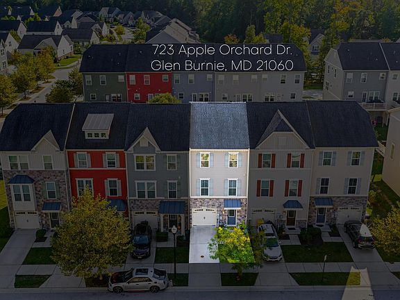 Welcome to 723 Apple Orchard Drive, a stylish and spacious townhome located in the amenity-rich Creekside Village. Spanning nearly 2,000 square feet across three finished levels, this three-bedroom, four-bath home offers a flexible layout designed for modern living. The main level features luxury wood flooring and an open-concept design that flows seamlessly from living to dining to kitchen, where a central island and pantry make everyday meals and entertaining effortless. Upstairs, the primary suite is a true retreat with generous walk-in closets, a soaking tub, and a double-sink vanity for added comfort and convenience. Each level includes a bathroom, and the composite deck off the main floor provides a perfect outdoor escape. With a one-car garage, driveway parking, and access to community perks like a pool, fitness center, dog park, and clubhouse events, this home delivers both lifestyle and practicality. NO FRONT FOOT FEE, and easy access to BWI, Fort Meade, and major commuter routes make it a smart move in every sense. Notable updates from the current owners include: Kitchen remodel, new privacy fence, new patio, and entire house painted!