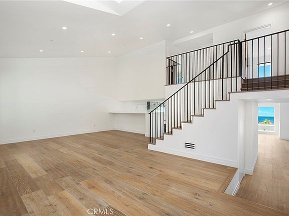 This resort-like residence embodies 4,030 sq. ft. of stunning modern architecture and design. A beautiful curved entrance is a welcoming hint of the beauty waiting within. Huge sliding doors line the outside wall allowing breathtaking panoramic ocean views from almost every vantage point of the large room. Adjacent is the white chef’s kitchen complete with gas stove and hood, a huge island with quartz countertop and waterfall, and modern fixtures. The amount of cabinets plus an additional separate “butler’s pantry” with wine refrigerator add to an entertainer’s dream. A very manageable staircase with metal railings leads to an equally stunning second floor where ocean views are identically spectacular. This house has 4 bedrooms and 4 baths all of which have high end features including premium flooring, backsplash, tile, and cabinetry. Part of this incredible house could be used as an in-law suite or additional living space. If not, a second beautiful and well equipped kitchen upstairs is definitely a handy perk. Having a large laundry area with full-sized washer and dryer plus cabinet and counter space makes clothes care simple and convenient. Personal balconies on each floor provide great space to enjoy the Laguna Beach sunshine and vibes. With all it has to offer, this is uniquely one-of-a-kind and won’t last long.