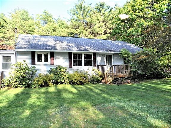Looking for single level living?? And a 2 car garage with storage and workshop area?? And over an acre of land?? Look no further! This cute ranch is larger than it looks, and features 2 bedrooms with ample closets, first floor laundry, and a 16 X 12 sunroom with slider to the backyard. Full basement with area set up for workshop, and has newer furnace and water heater. Add the central vac system, whole house dehumidifier, pellet stove, replacement windows, new gutters, and deck - what a bargain! Add your updates and you'll never leave!