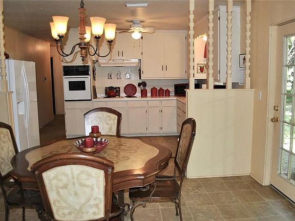 Very neat 3 BR, 1.5 BA, 2 car garage brick home on 2 wooded lots (.414 ac. m-l) near downtown; Built in 1972; Living room features carpet, lighted ceiling fan & electric fireplace console (conveys); Open concept kitchen & dining area; Kitchen has a built-in electric oven, electric cooktop, lighted vent-a-hood, built-in dishwasher, double sink & refrigerator (conveys); Bonus room has a full-size washer & dryer (both convey with acceptable offer) & space for a home office or sewing room; Large bedrooms with carpet & walk-in closets; Hall bath has a tub-shower combo, vanity with sink & toilet; Master bath has a vanity with sink & toilet; Huge covered patio on concrete slab, 2 storage sheds, In-ground storm cellar.
