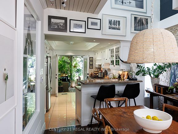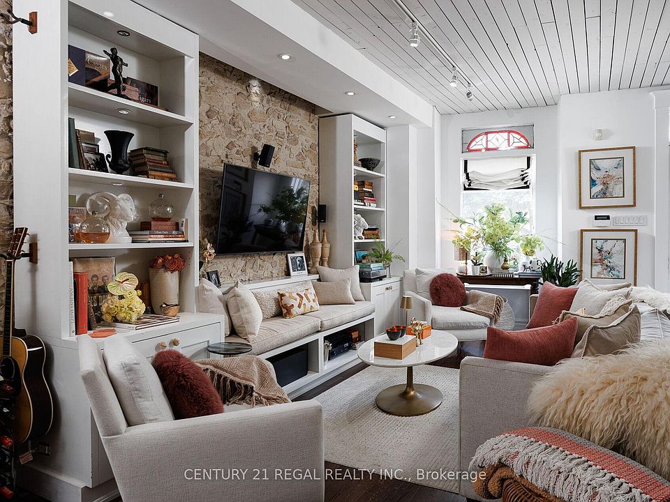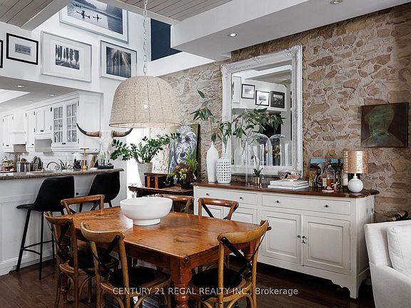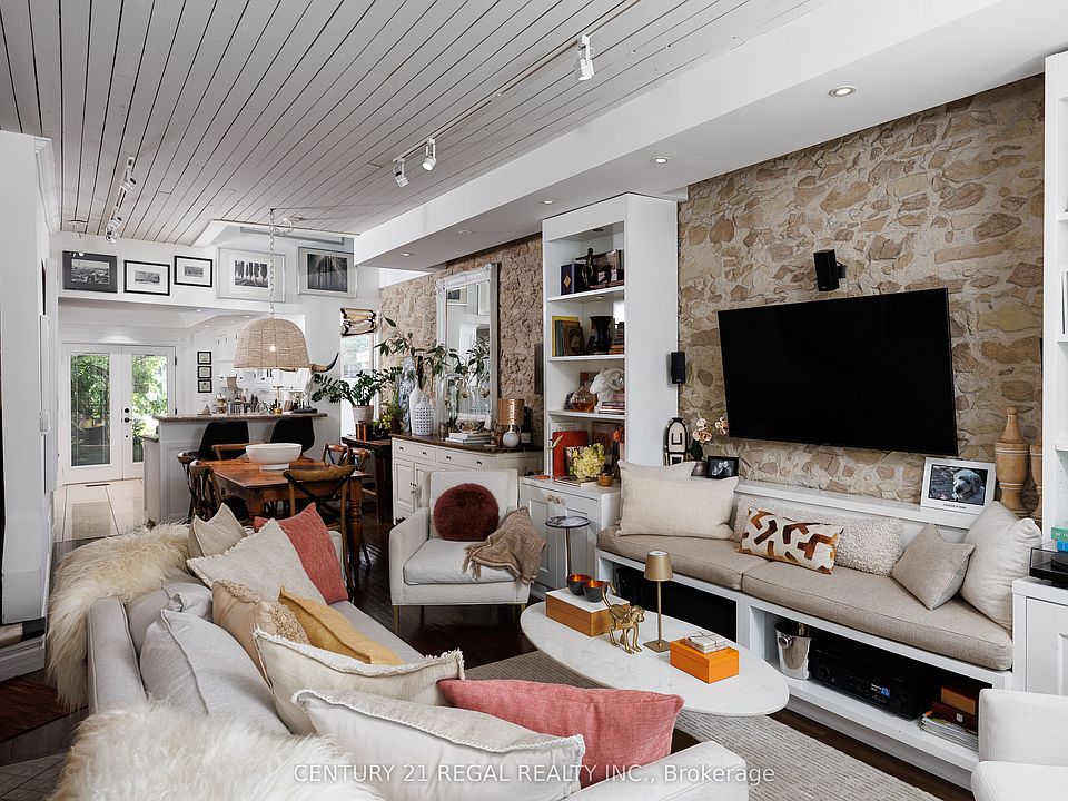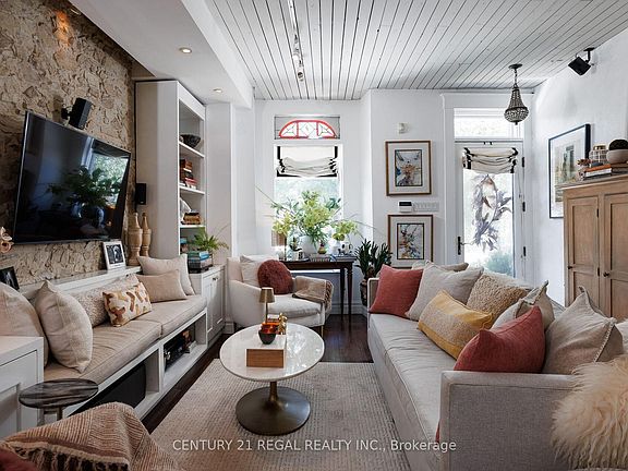 There's absolutely nothing like this Durie Street home full of character and style! From the moment you step inside this Victorian-meets-modern architectural masterpiece, you'll be captivated by its charm and craftsmanship. The living room features a stunning hand-painted wall designed to resemble authentic French stonework, complemented by custom cabinetry, pot lights, and a shiplap ceiling for a warm, inviting touch. A skylight above the atrium fills the main floor with natural light, enhancing the open-concept layout. The dining area flows seamlessly into a galley-style kitchen with coffered ceilings, white cabinetry, stainless steel appliances including a gas stove, and granite countertops. Through French double doors, step into your own urban oasis, a beautifully landscaped back garden with interlocking brick, the first outdoor living room is enclosed with a pergola covered in greenery perfect for shade sitting. Continue through the garden to the second outdoor living room catching the late afternoon sun. The third-floor primary bedroom loft is a true retreat, featuring a skylight and unique architectural details that blend effortlessly with the homes character. The finished lower level offers a gorgeous guest suite with pot lights, a well-appointed laundry room, and storage beyond your wildest dreams-yes, real storage space in the city! This Durie Street home is truly one-of-a-kind where historic charm meets thoughtful modern design.