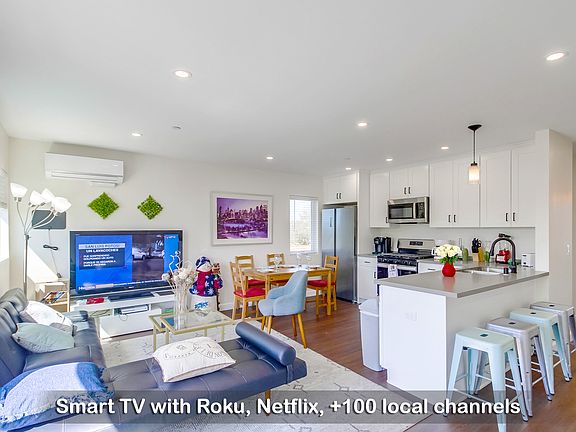 * FULLY FURNISHED, AVAILABLE FOR BOTH SHORT-TERM AND LONG-TERM RENTAL; PLEASE CALL OR MESSAGE FOR ANY QUESTION * Welcome to our beautifully furnished 3-BR, 3-bathroom home! Located in a peaceful area 5 mins near the beach, our home is close to many places in San Diego, shopping centers, and local restaurants. We provide garage, gated backyard, fully-equipped kitchen, in-unit laundry, King Bed with cozy bedding, City View, 500 Mbps Fast WiFi, & so much more below. By booking our home, you will get these great value in return: Prime Location: Nestled in a peaceful neighborhood, our home is centrally located near shopping centers, local restaurants, Walmart Supercenter, and highways connected to all San Diego attractions within minutes. Free Parking: Take advantage of our covered parking for 2 cars, conveniently located right under the house. MODERN LIVING AREA Our home features a modern living room with central air conditioning, sofa beds, and a flat-screen smart TV, offering a comfortable and well-lit space for relaxation. 60" Inch Smart TV w Standard Cable with over 100+ Free Local Channels + Smart Roku for Netflix, Disney, Youtube and so many more internet channels. Endless entertainment awaits! ULTRA Fast 500 Mbps Fiber Internet for 4K Netflix streaming, Lag-Free Gaming and Productive Work from Home. Ideal for those who work from home, computer power users, or avid gamers, even for large groups. Central AC cools every corner of the house, ensuring a refreshing retreat from the San Diego heat, which can soar above 80 F. Game Console complete with a wide selection of video games and multiple controllers for group play. Perfect for gamers or families looking for a fun and engaging way to unwind. Exercise Equipment: Stay active with our convenient in-house fitness amenities, including a yoga mat and small free weights. KITCHEN & DINING Fully equipped for all your culinary needs, our kitchen features a gas stove/oven, blender, toaster, cooking pans, baking trays, and essential supplies like coffee, oil, sugar, salt. All modern appliances including a coffee machine, microwave, and fridge. Perfect for guests who love to cook and dine in comfort. In-unit Washer & Dryer complete with complimentary detergent and dryer sheets. Irons and ironing boards are also provided to keep your clothes crisp and fresh. Stop spending hundreds of dollars at laundromats. Dishwasher makes cleanup a breeze after meals. Perfect for families and large groups. 3 BEDROOMS The bedrooms are furnished with 1 king bed, 2 Queen beds with cozy linens, and ample pillows to ensure a restful night's sleep. King Bed: Luxury and perfect for two people to sleep comfortably without crowding. Outfitted with high-quality linens to ensure a peaceful and restorative night's sleep. Comfortable Mattress & Bedding with a protective mattress cover for hygiene. Fresh sheets, a cozy duvet, and a stylish duvet cover ensure a restful sleep. Dedicated Workspace: Stay productive with an ergonomic chair, ultra-fast WiFi, and a spacious table. Ideal for those needing to work remotely or study during their stay. Baby Crib: Our standard-sized crib is perfect for newborns, babies, or toddlers under 3 years old, ensuring they have a safe and comfortable sleep space. Please bring your own crib sheet to make it feel just like home for your little one. BED ARRANGEMENT: Master Bedroom: 1 King Bed and a Crib with Smart TV for bedroom entertainment. En-suite bathroom. Bedroom 2: 1 Queen Bed with en-suite bathroom Bedroom 3: 1 Queen bed and a Workspace area 3 BATHROOMS 3 Fully-stocked Bathroom perfect for Large Group with everything you need: shampoo, conditioner, body wash, along with a hairdryer and fresh towels. Bathtub: Unwind in our spacious and pristine bathtub, complete with luxurious bubble bath essentials. Perfect for soothing relaxation after a busy day experience the ultimate comfort and tranquility right in your home. PRIME LOCATION Our home is in a peaceful neighborhood right in the heart of San Diego. You can easily drive to the city's best the Gaslamp Quarter (10 minutes) and local cuisine and stores like Walmart Supercenter within 3 minutes. Want to go to the Bay & Beach? It's also a short drive away. 3 mins walk to nearby stores, supermarkets, and restaurants 10-15 mins to Downtown, Gaslamp Quarter, Little Italy, Old Town San Diego 15 mins to Coastal Areas like Coronado, Point Loma 15 mins to North Park, Hillcrest, Mission Valley, Balboa Park, San Diego Zoo, City Heights, SDSU College Area 20 mins Pacific Beach, SeaWorld San Diego, Mission Bay Park, Belmont Park 10-15 mins to Chula Vista, Bonita, Imperial Beach, Otay Mesa, San Ysidro 15-20 minutes to Clairemont, La Jolla, University City, UCSD, Miramar, Mira Mesa 10-20 minutes to Lemon Grove, La Mesa, La Presa, Spring Valley, El Cajon, Santee, Lakeside, Alpine. Owner pays for all 100% of utilities. The maximum occupancy is 8 people. Pets are allowed. Reserved covered parking under the home. We accept flexible lease that is longer than 30 days to 365 days or more with an option to extend at the end of the lease.