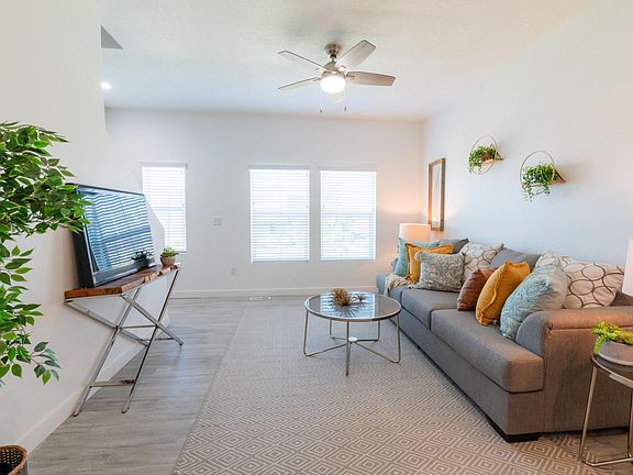This well-maintained 3-bedroom, 3-bath townhome in Vineyard's vibrant Edgewater community is a must-see! With new carpet and fresh paint throughout, this 2019 home offers a spacious floor plan featuring a bright main-level family room with easy garage access. The second level boasts an open-concept great room, sleek modern kitchen with granite countertops and stainless appliances, a dining area perfect for entertaining, plus a guest bedroom and full bath. Upstairs you'll find a large primary suite with dual walk-in closets and double-sink bathroom, a secondary ensuite bedroom with full bath and walk-in closet, and a conveniently located laundry room. Community amenities include a pool, hot tub, clubhouse with kitchen and theater, gym, pickleball and basketball courts, playgrounds, and walking paths. Prime location near Top Golf, professional offices, dining and Megaplex Theaters, with easy access to I-15, Frontrunner, shopping, and UVU. This move-in ready townhome offers a no-neighbor entry, blending comfort, convenience, and community living. Schedule your personal tour today or join us at the open house Saturday, Sept. 6, from 11am 1pm. *Measurements taken from floor plans; County records show 1906 sq feet. Buyer advised to verify.