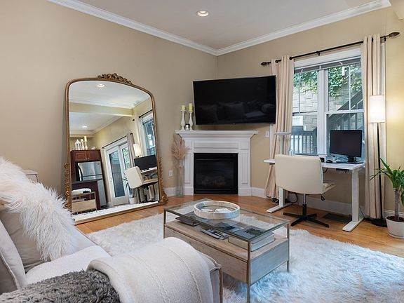Live near everything in this centrally located, turn-key condo in City Point close to the East Broadway shops/restaurants and minutes to the Seaport area. This One-bed, One-bath condo maximizes every square foot of space and is ideal for entertaining. The kitchen/living area has granite counters, stainless steel appliances, a center island with a breakfast bar, high ceilings with crown molding, recessed lighting, a gas fireplace, and sliders to your private back deck/patio. The spacious full bath features a jacuzzi tub with custom tile, while the bayfront bedroom has enough room for a kingsize bed and a home office! Other amenities include central AC, in-unit laundry, and extra storage in the basement. Folks - this is a great entry-level unit with lots of character.