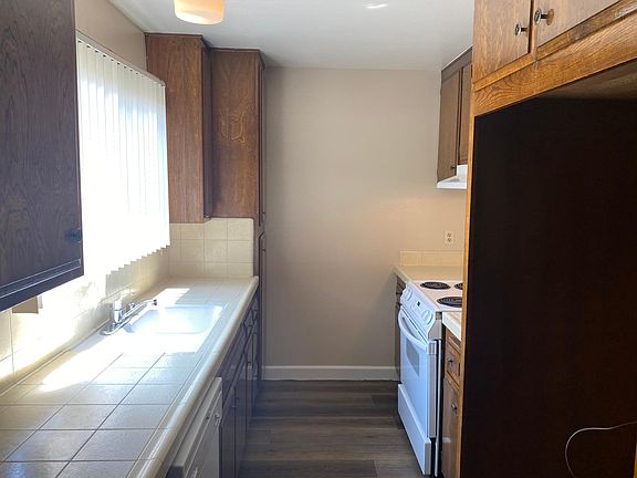 Private and spacious end-unit townhouse (2-STORY) apartment with two bedrooms and 1 bathroom upstairs, and a guest half-bath downstairs. This sunny end-unit shares only 1 wall and has a private entrance to a personal fenced patio that joins the spacious living room. The downstairs living area boasts brand new wood-like Luxury Vinyl Plank flooring, with brand new plush carpet installed in the bedrooms and stairs. The open kitchen includes a dishwasher, and the electric oven/range sits on the serving hatch/window, viewing the units open floor plan. With central a/c, laundry on-site, and assigned garage parking with a personal storage unit, this apartment has everything! Be the one to call this beautiful townhouse located in the coveted area near the Burbank Town Center, 'Home'! Water, Trash & Yard-Care Paid Tenant Responsible : Electricity