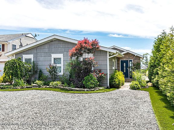 Glorious sunrises & sunsets await you in this 3bed/3bath riverfront home with southern exposure. Experience unique, panoramic views from inside & out. Located where the Beaver Dam Creek meets the Metedeconk River, it's a boater's dream. Enjoy the ease of one-floor living with an open floor plan, updated kitchen, quartz counters & center island. The living area boasts freshly painted vaulted ceilings, gas/FP, brick accent wall, & area for an office or bar. French doors lead to the primary bedroom with vaulted ceilings, large waterfront windows, & ensuite bath with spa tub & shower. Two addl bedrooms with ensuite full baths. NEW ROOF, NEW INSULATION, NEW WATERPROOF WOOD FLOORS, NEW BULKHEAD/DOCK/2021 & MUCH MORE!