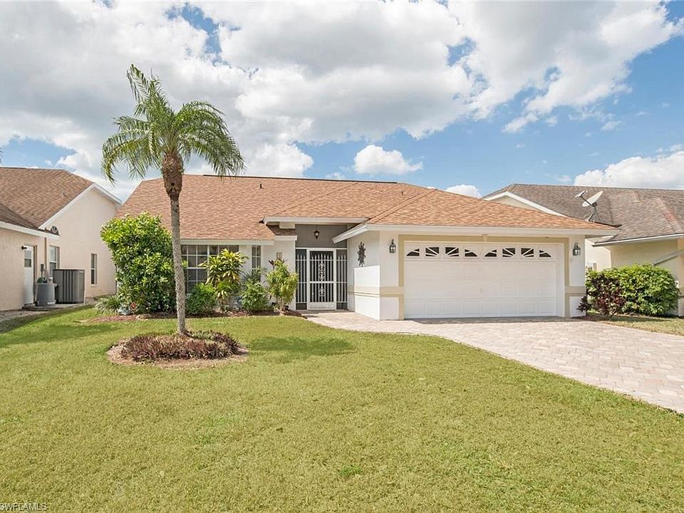BACK ON MARKET Due to Buyer Financing. Discover Berkshire Lakes, a well-known and desirable Naples community in a fantastic location with LOW HOA fees of just $535 per year! Open floor plan with terrific natural light, soaring ceilings and plank tile flooring throughout main living area. Inviting living space featuring 3 bedrooms, 2 stylish updated bathrooms and an attractive, efficient kitchen with stainless steel appliances. Sliding doors from main living area, master bedroom and dining/family area lead to the sparkling pool with spacious screened lanai. Berkshire Lakes has walking/biking paths around two of the large lakes, a fishing pier, tennis/pickleball courts, a large lakeside clubhouse which hosts club meetings and can be utilized for private parties. Located next to Berkshire Commons (Publix, Walgreens, First Watch Café & more) and just 15-20 min to Naples 5th Ave / Gulf of Mexico! Priced to sell and ready to welcome its lucky new owner! Paver driveway and 2014 Roof by Kelly Roofing. NEW Master Bedroom carpet April 2020.
