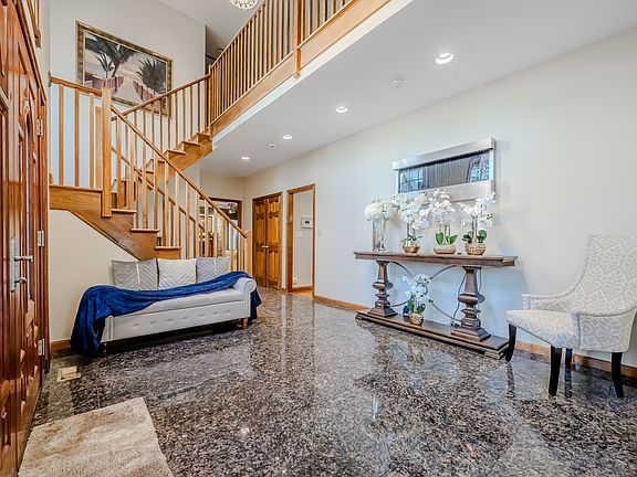Gas fireplaceDramatic stone fireplaceInviting two-story foyerTwo generously sized islandsWolf appliancesSub-zero fridgeSpa-like soaking tub