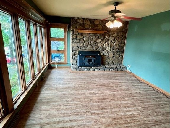 ONLINE AUCTION ONLY. This Real Estate having belonged to Kim Maymon will be offered at online auction with a reserve conducted by auctioneer Jeff Goodwin License #AU12000032 Goodwin Auction Company. This is a wonderful ranch style home that has approximately 1,252 square feet of living space. The home features 3 beds and 1 bath on approximately 0.62 acres with a parking pad on the side of the house. The living room features a wood burning fireplace with insert and electric blower set against a stone hearth. The house boast a spacious kitchen with a large pantry area. The entire house has large framed Anderson windows to let in an abundance of natural lighting. The backyard has a vast amount mature trees to provide shade while sitting out on the back patio watching deer