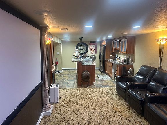 Beautiful two bedroom and three bath rancher home. Large corner lot with landscaping, automatic sprinkler system, split rail vinyl fence in front, 6’ vinyl privacy fence around majority of back yard. Two Sawyer waterscapes, five person Bullfrog Hot tub, Trex deck in front. Upstairs had a complete redo with the exception of the two main floor baths. LVP flooring, wide open concept living room, kitchen, and dining room. The Master bedroom is very large with a sitting room and gas log fireplace. The kitchen is done in two tone cabinets , white and black. There are granite countertops and newer appliances. The kitchen also features a beautiful copper farmers sink. The living room has a floor to ceiling stacked stone gas fireplace. The basement is equipped with a beautiful bar and theater space complete with three reclining theatre chairs that come with the house. The oversized bedroom has an egress window and space for a desk. Two car garage with openers. Unique mailbox stays with the house.