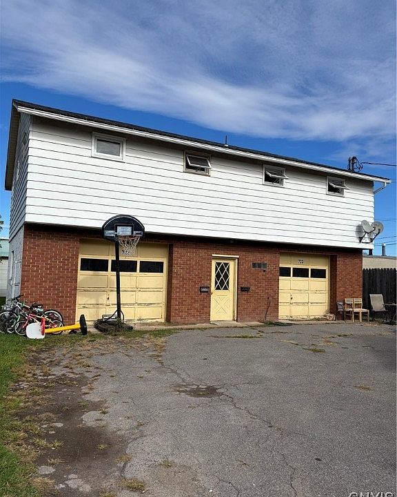 Unique property (built to resemble a raised ranch) as a masonry contractor built this for his own business and has owned it since 1975 (cement block construction). 30 ft deep and 40 ft wide with 2 overhead garage doors approx 8 ft high to accommodate his truck and 2 apartments above for rental income or worker housing. Lyncourt schools are also a big draw for getting tenants. 1 unit is a two bedroom and the other is a one bedroom. Both units are hardly ever vacant.