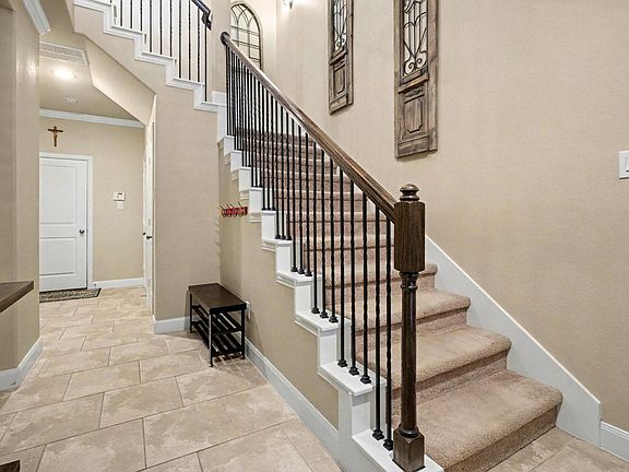 Stylish finishesWrought-iron balconyStucco-and-brick exteriorBuilt-in barTwo spacious primary suitesGourmet kitchenOpen-concept main floor