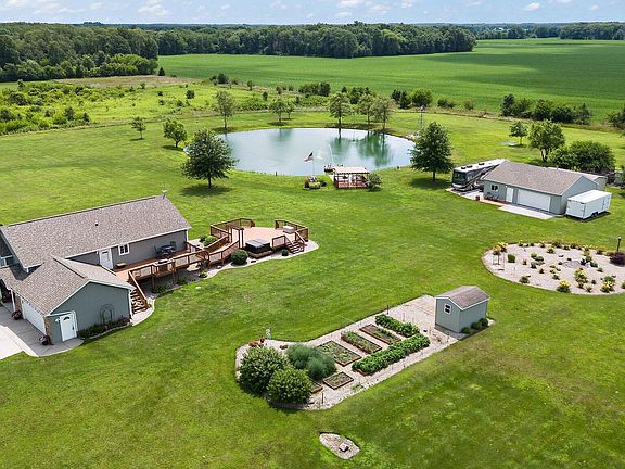 Welcome to your METICULOUSLY cared for bi-level home resting on 10.5 acres!! This beauty offers the perfect blend of comfort and outdoor living!! Step inside to discover the warmth of bamboo flooring throughout the main upper living areas complementing the open-concept main floor. The fully finished lower level has heated floors as well as an included pool table with cue's and pool light as well as a 28 X 14' office/craft space/playroom or it could be divided back into two additional bedrooms.Outside, a massive 2 tiered deck showcasing a NEW HOT TUB and newer GAS GRILL that stay with the property!!! This gorgeous parcel has a stocked pond with a pier, gazebo, WORKING WINDMILL and a firepit!!! For the hobbyist or car enthusiast, a 30 X 40 detached garage with built in storage cabinets and a wood-burning stove awaits you offering additional storage and workshop space. There is plenty of room for storing an RV outside complete with a 30 amp electric for power!!This EXCEPTIONAL property seamlessly blends indoor comfort with outdoor tranquility, providing a rare opportunity for those seeking a peaceful and luxurious retreat. THIS ONE CHECKS ALL THE BOXES!!