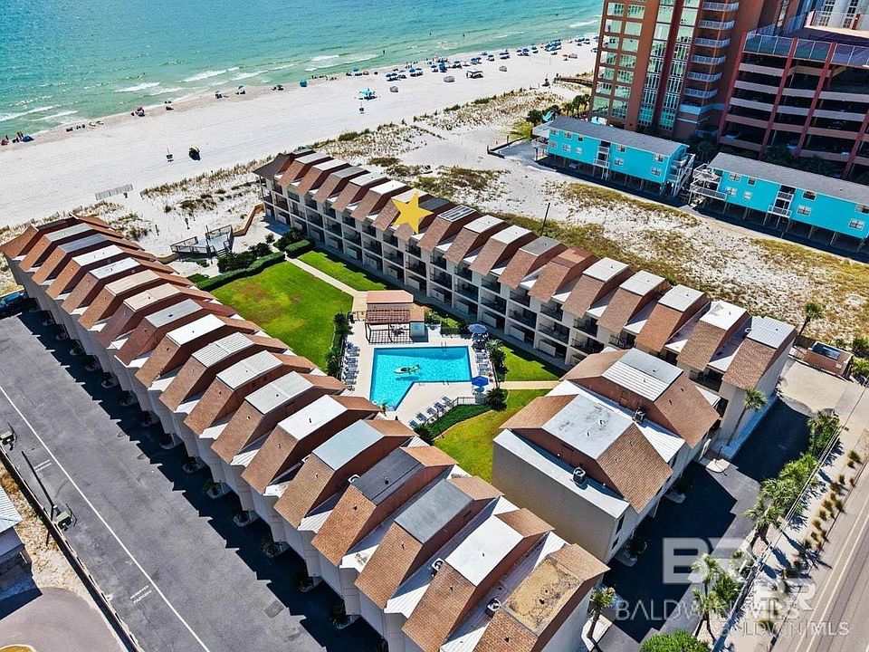 Just steps from the sugar white sands of Gulf Shores, this 2 bedroom, 2.5 bath townhome offers the perfect blend of comfort and convenience. Gulfside Townhomes is a low density complex with only 40 units, ideally located within walking distance to popular restaurants, shops, and entertainment. Enjoy both Gulf and pool views from two private balconies, plus the ease of two covered parking spaces and extra storage for all your beach gear. Inside, you will find new flooring installed in 2023 and recently replaced AC condensing unit (2022). The functional two-story layout includes spacious living areas, a well maintained kitchen, and bedrooms designed for privacy and relaxation. The community features a large pool, family-friendly common areas, and a solid HOA, making it a perfect worry free coastal lifestyle. Whether you're searching for a beach getaway or an investment opportunity, this property could be the one! Buyer to verify all information during due diligence.
