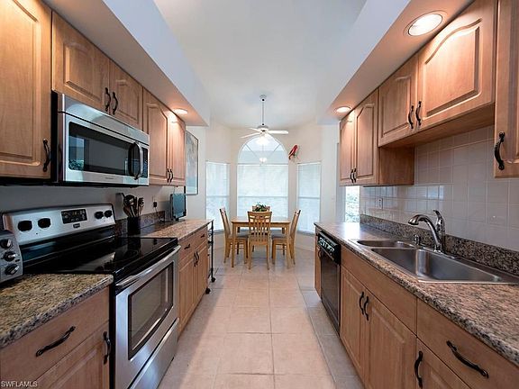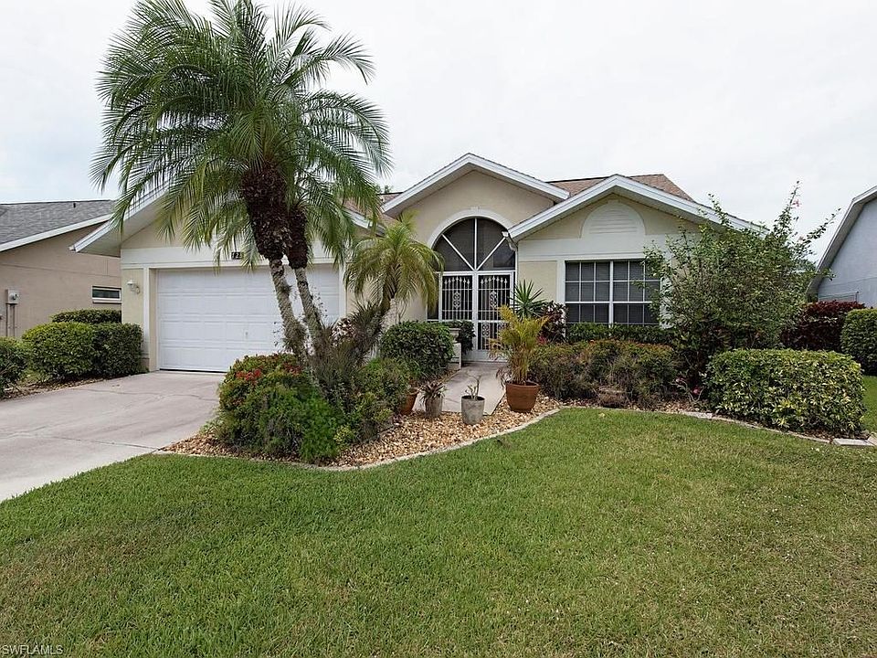 H.10453 Nestled in the heart of Berkshire Lakes, this charming well-maintained home features volume ceilings and bright sunlit rooms, tiled floors throughout including the lanai and carpeted bedrooms. The galley kitchen has loads of cabinets and an eat-in morning area. The landscaping compliments the home and offers privacy in the backyard. Berkshire Lakes is a fantastic community with walking and bike trails, Clubhouse, community pool and a close-in Naples location. And the Association fee is only $240.00 per year. Nearby shops, restaurants, schools are a plus and the beaches are only minutes away.